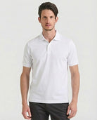 Polo de manga corta en interlock 100% algodón peruano; cuello y puños de punto; tapeta reforzada de dos botones; costuras laterales planas con pespunte a tono; etiqueta tejida interior con discreto logotipo. Su tejido denso de interlock garantiza una recuperación y durabilidad superiores, ofreciendo una silueta elegante con una comodidad y resistencia excepcionales.