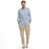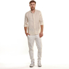 Camisa de hombre manga larga cuello mao con entretela liviana confeccionada en lino 100%, lleva isologo bordado LD a tono en el frente altura de pecho. El calce es Custom, clasico.