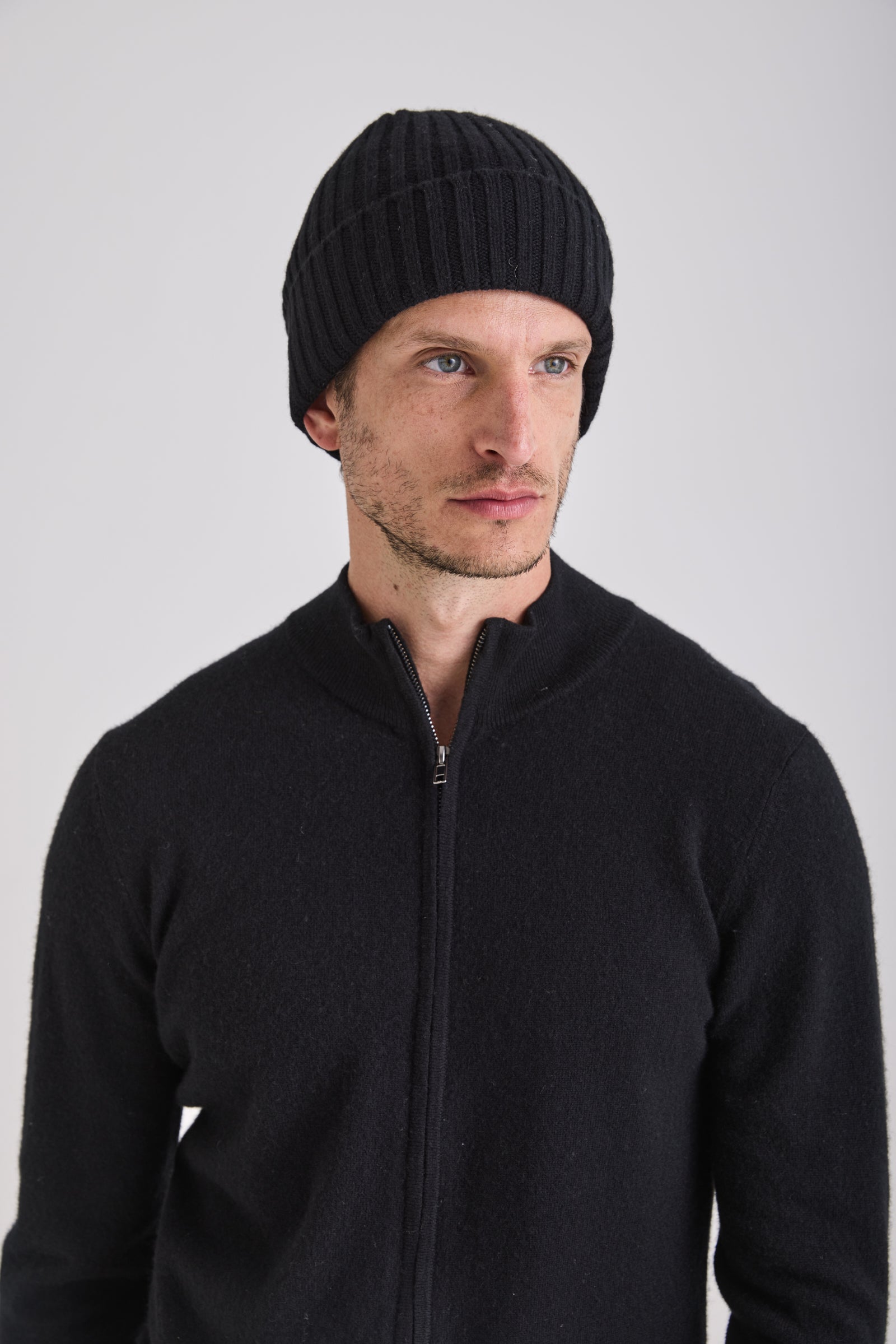 Crafted from 100% high-grade cashmere, it delivers natural warmth and a featherlight touch against the skin. The rib-knit structure ensures flexibility, comfort, and a secure fit. Designed for effortless pairing in both urban and outdoor settings, it stands as a quiet symbol of refined luxury.