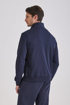 Half-zip sweatshirt in cotton terry; no side pockets; high stand collar with black nickel zipper; 1x1 rib on cuffs and hem; custom neck tape; tone-on-tone high-density embroidery at chest; regular fit; made in China.