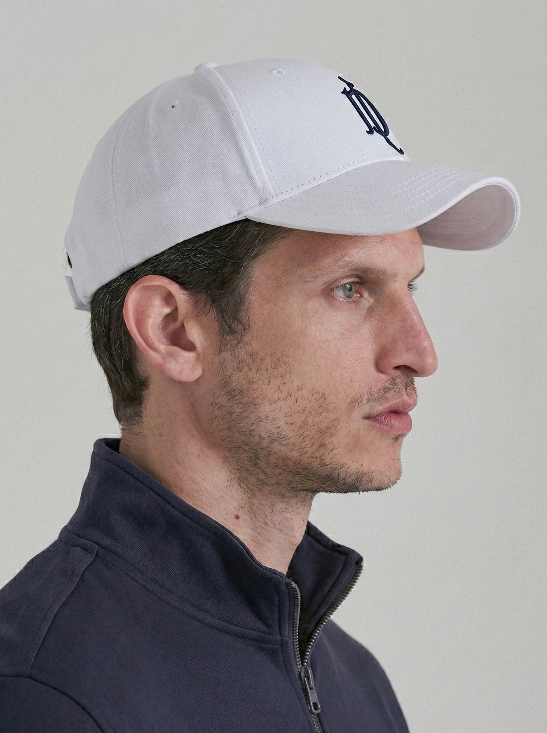 Structured six-panel baseball cap; outer shell and lining in 100% polyamide; light recycled duck down padding (90/10); tonal embroidered LD logo on front; vertical brand label stitched on both sides; adjustable back strap with high-quality Velcro closure; internal size and care labels. Designed to preserve shape, precision, and form through time.