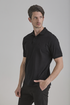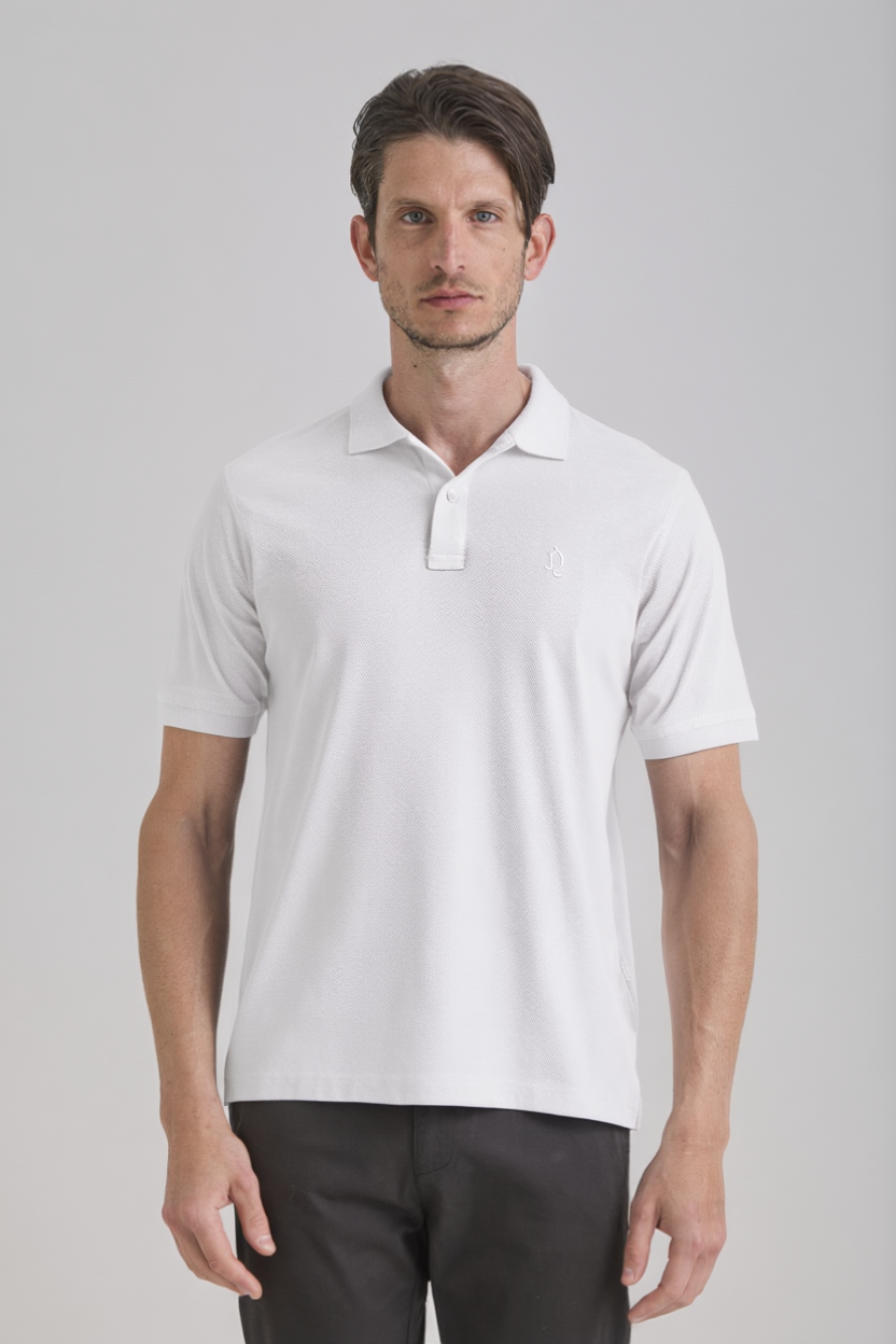 Short-sleeve polo shirt in 100% Peruvian cotton interlock; knitted collar and cuffs; two-button reinforced placket; flat side seams with tonal stitching; internal woven label with subtle branding. The dense interlock construction ensures superior recovery and durability, providing a refined silhouette with exceptional comfort and resilience.
