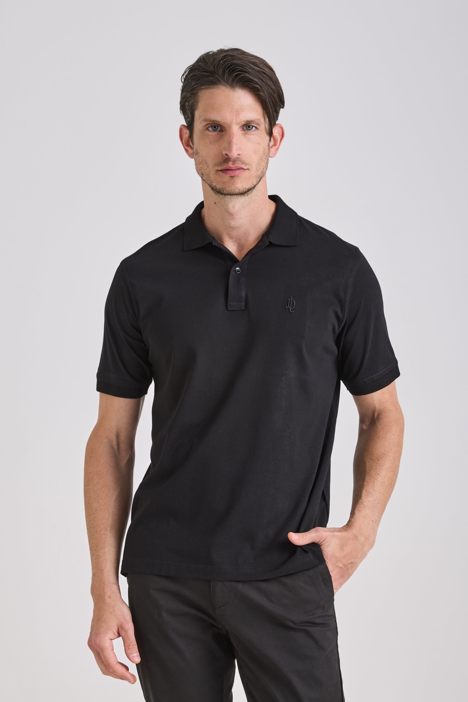 Made from premium Peruvian cotton jersey, it delivers exceptional softness and durability while maintaining a clean silhouette. Tone-on-tone knitted collar and cuffs, together with 3D LD chest embroidery, express quiet sophistication and crafted precision. A timeless essential designed for effortless versatility and modern comfort.