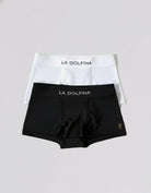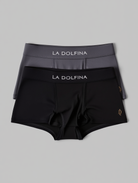 2-Pack of trunks; 95% combed cotton and 5% spandex blend; mid-rise waist; branded elastic waistband; flatlock seams for enhanced comfort; short leg length; tonal stitching; printed inner care label for a smooth interior finish. Delivered in coated dual-side cardboard packaging with rubber finish and signature La Dolfina detailing.